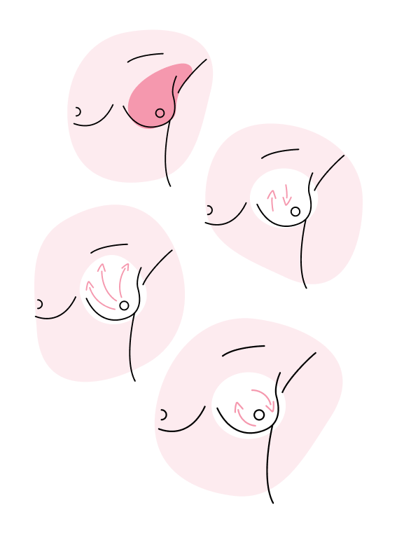 4. Brüste nacheinander in Halbkreisen abtasten.