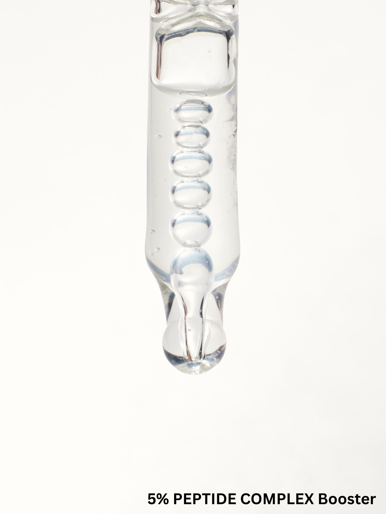 Peptid Booster: Mix ein paar Tropfen des Boosters mit deiner Feuchtigkeitspflege oder gebe sie direkt auf die Haut und massiere sie ein.
